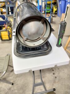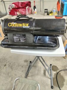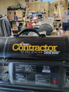 Great heater but might need TLC as it has been sitting for a few years. Duel fuel, runs on Fuel: Kerosene (Types 1 & 2), Diesel (1 & 2), Home Heating Oil, JP-8, Biodiesel blends (B2, B5, B10, B20).
